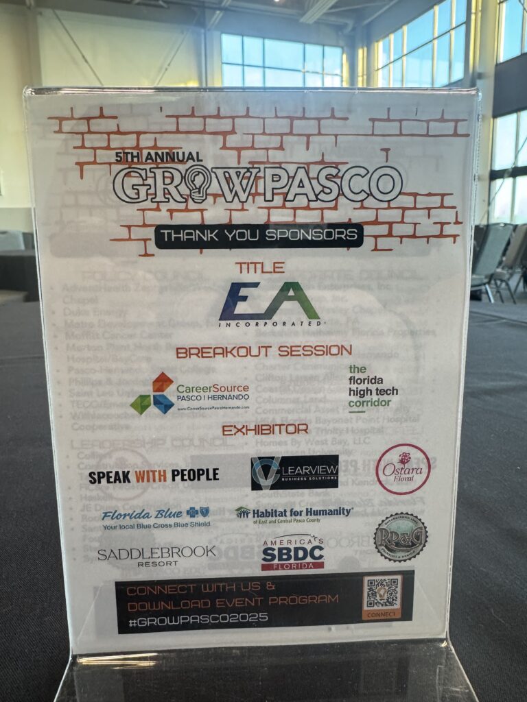 We are thrilled to announce that events like GROW Pasco 2025 are made possible through the generous support of our sponsors. We are deeply grateful to our title sponsor, E-Assessment, Inc., and our breakout session sponsors, including the Pasco County Board of County Commissioners and Saint Leo University. Your commitment to fostering entrepreneurship and growth in our community is truly appreciated.